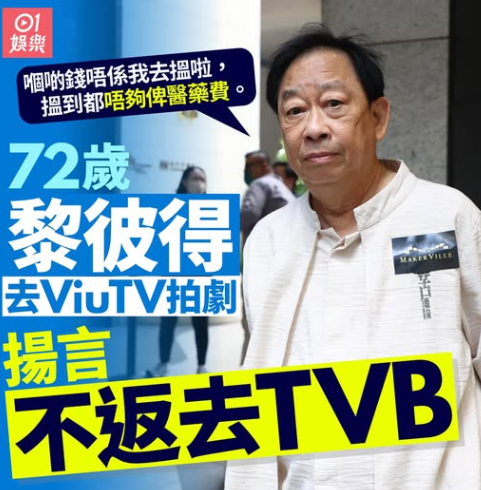 黎彼得之所以会选择妥协,可能与他两度经历“鬼门关”相关吧,因为在两年前,黎彼得就因为身体不适入院,因为经济窘迫,无力承担医药费,他又控诉TVB落井下石,在他生病期间,不让他工作之外,还结束了合约。
