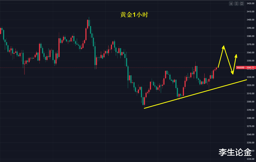 1小时,金价先是开盘下探3315,然后强势反弹突破3335凌晨高点,现在看似反弹给了空的机会,反而是诱空,欧盘暴力拉升之后美盘想着回落多的时候就会打下来,继续维持反复的洗盘动作,所以我认为先看黄金上涨,但美盘前谨防追多。
